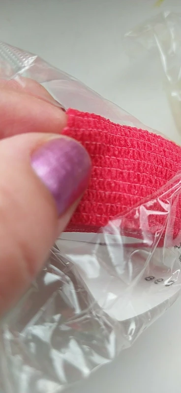 Great quality bandage! Just like vetwrap or other bandages that hold firmly to themselves and don't require clips. Colours are vibrant. Good for people and animals. Fantastic price and delivered quickly! Much more economical than buying it here in Canada. Thanks to a wonderful seller for this quality product!