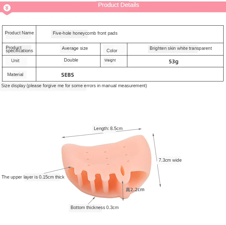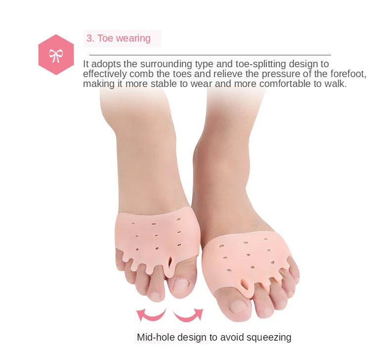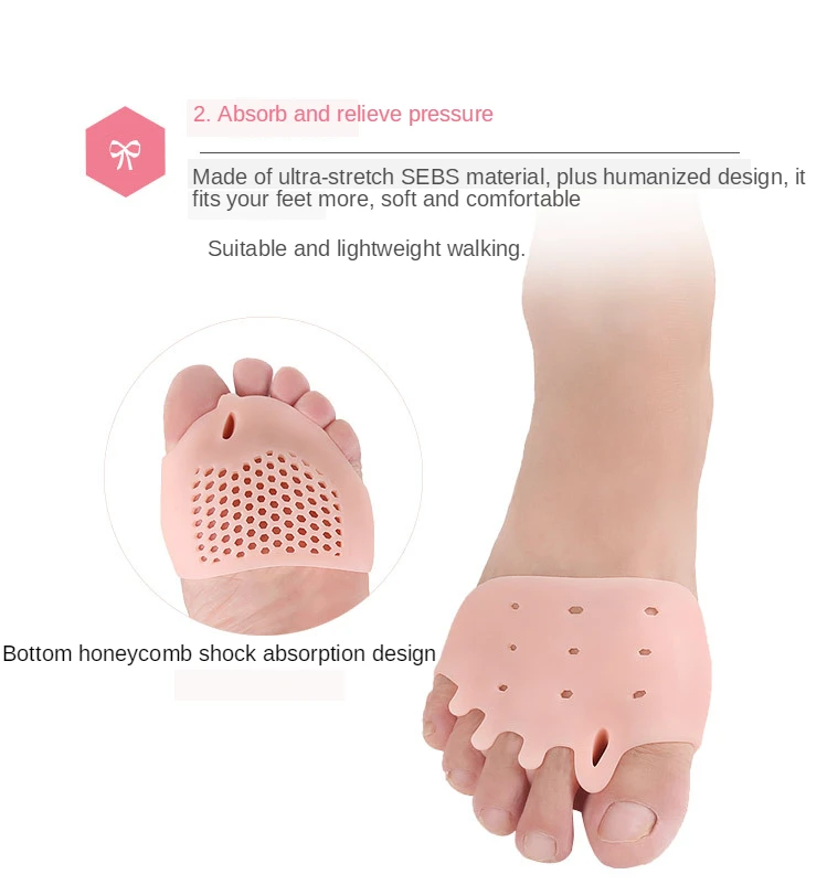 2 шт. = 1 пара силиконовых подушечек для передней части стопы с пятью отверстиями в форме сот, гель-корректор для вальгусной стельки, покрытие для ног, уход за ортопедами