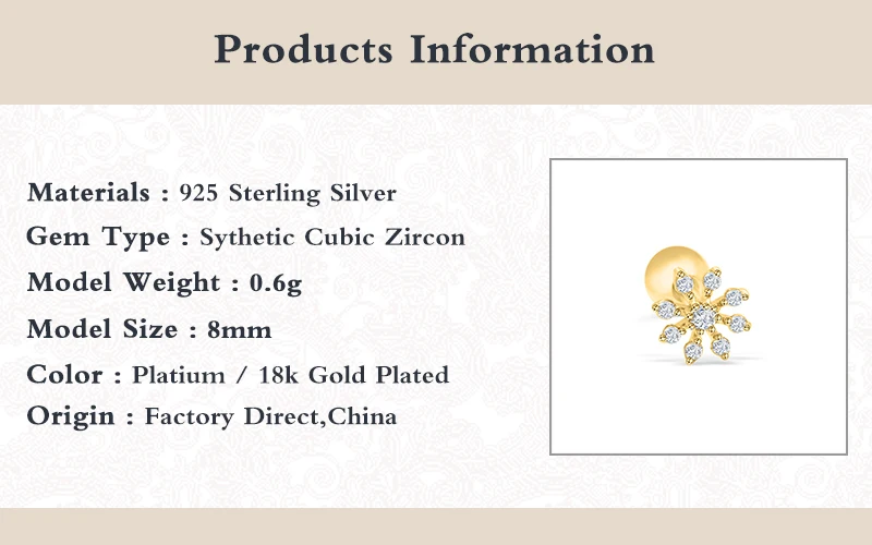 S925 серебро кольца носа в богемном стиле с цветочным узором 925 пр...