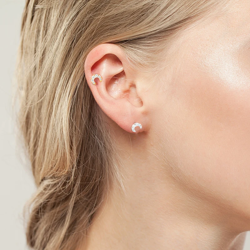 Aide 925 серебро белый циркон Луна, Звезды, серьги со шпилькой, для...