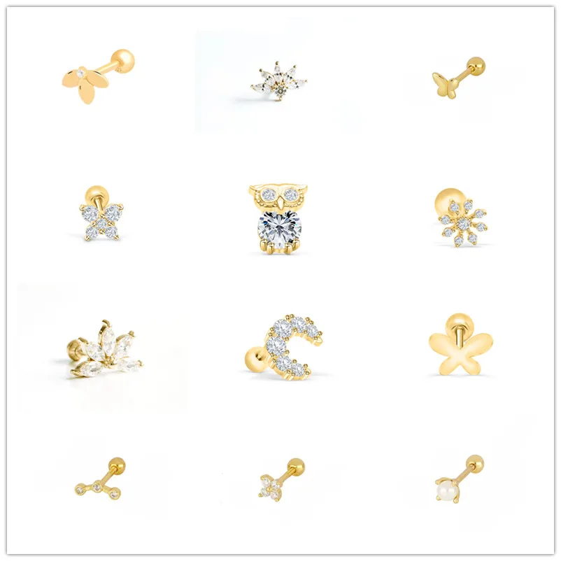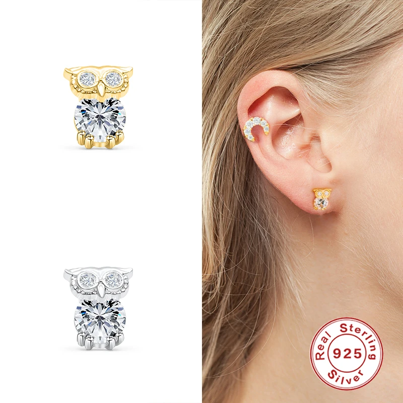 Romad 1 шт. Стад Серьги Мода с милой совой CZ серьги спиральный для хряща Pendientes плата 925 серьги для Для женщин пирсинг Aretes W5
