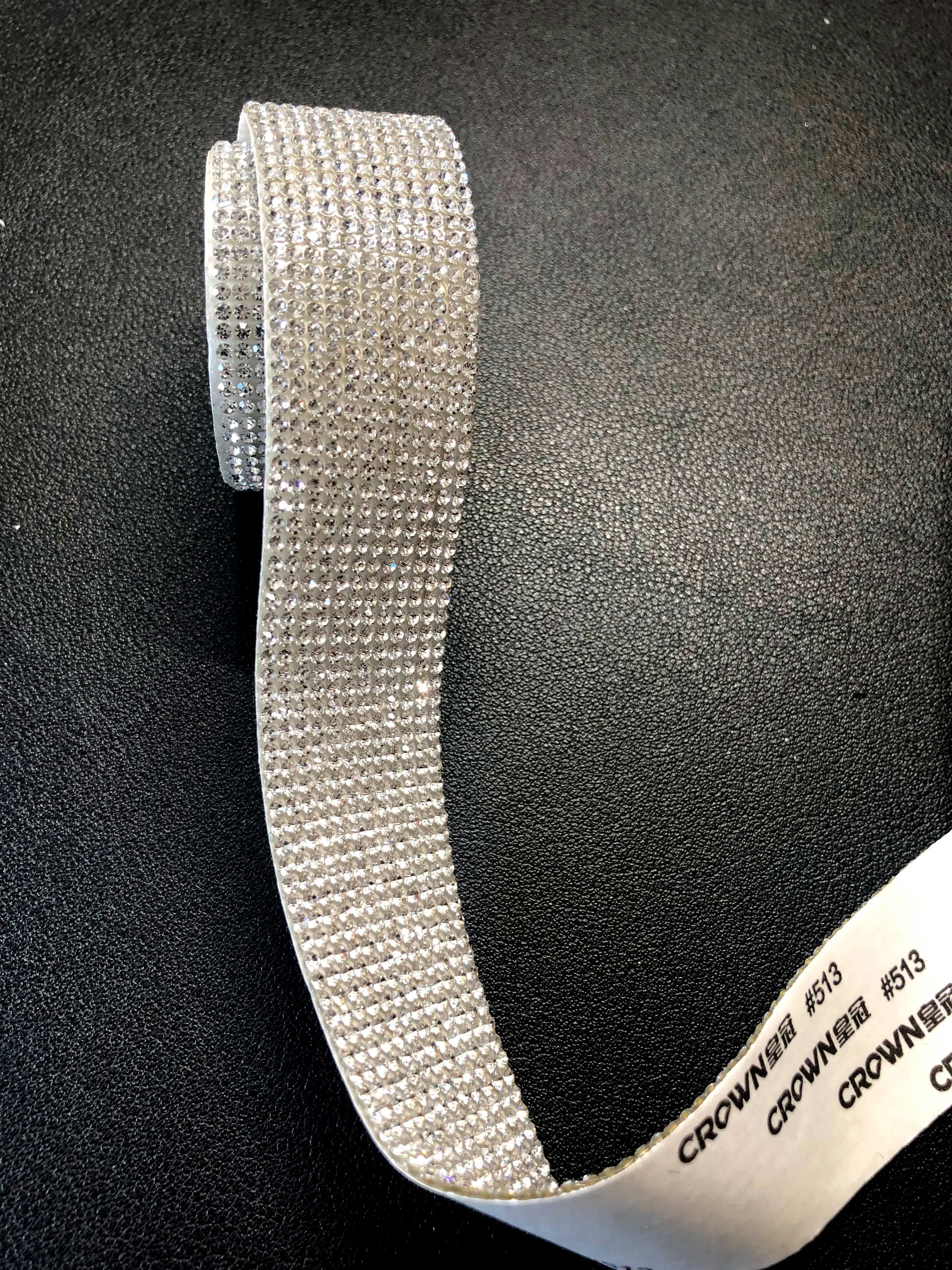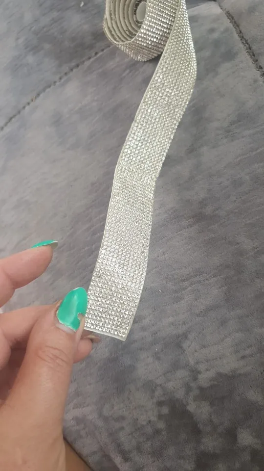 Very nice rhinestone sticker ribbon. In fact I liked it so much that this is my second one I have purchased. It really sparkles lots and has a lot of bling to it. The adhesive on this ribbon is excellent, the stick of it is amazing. Received in perfect condition. Received in excellent time. Thank you so much.