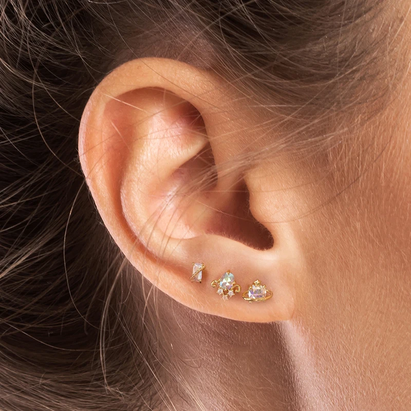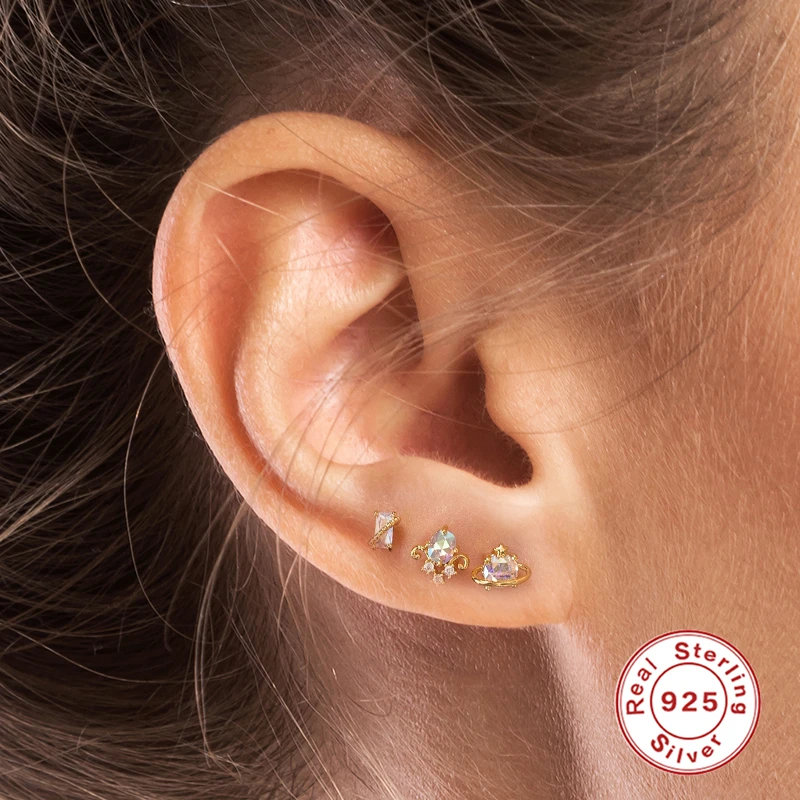 Женские серьги-гвоздики в виде змеи, Луны, звезды, кристаллов, CZ, серьги для пирсинга Arete W5, 1 шт., 925