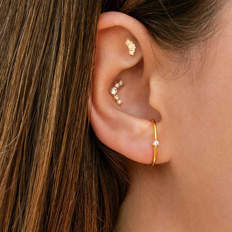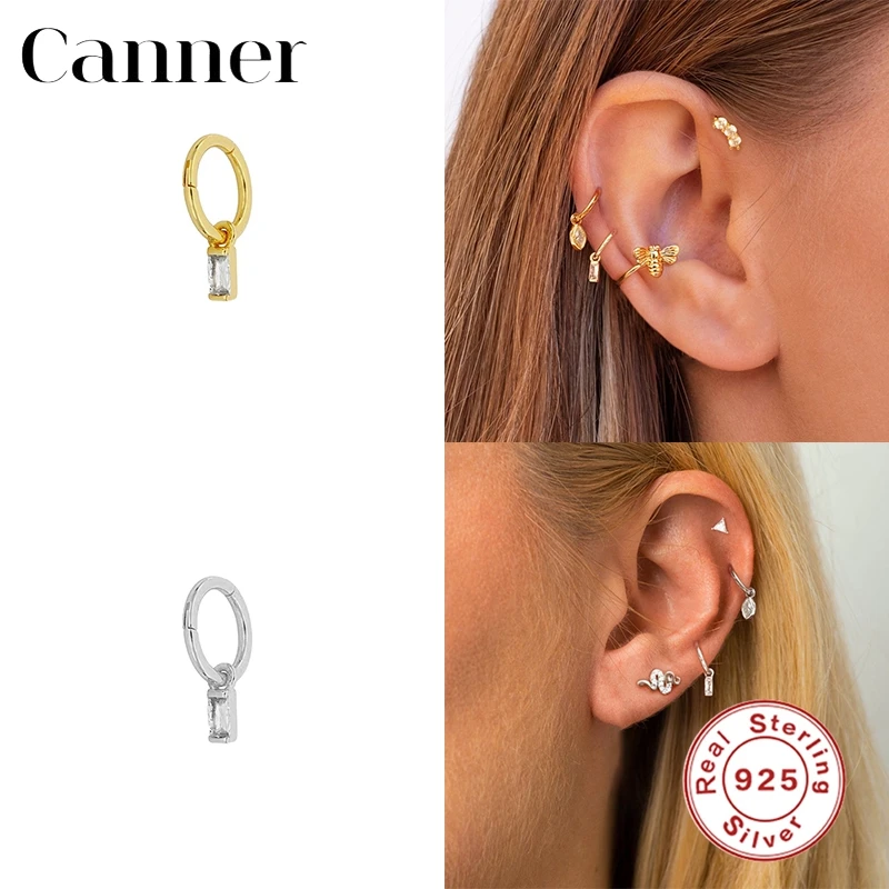 Женские серьги-гвоздики Canner, 1 шт., серьги с Луной и звездой, с фианитом, 925, спиральный для хряща