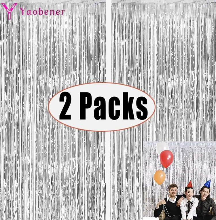 Декоративные занавески с бахромой, металлик, блестки из фольги, 2 упаковки, для дня рождения, свадьбы, девичника, Юбилейный фон