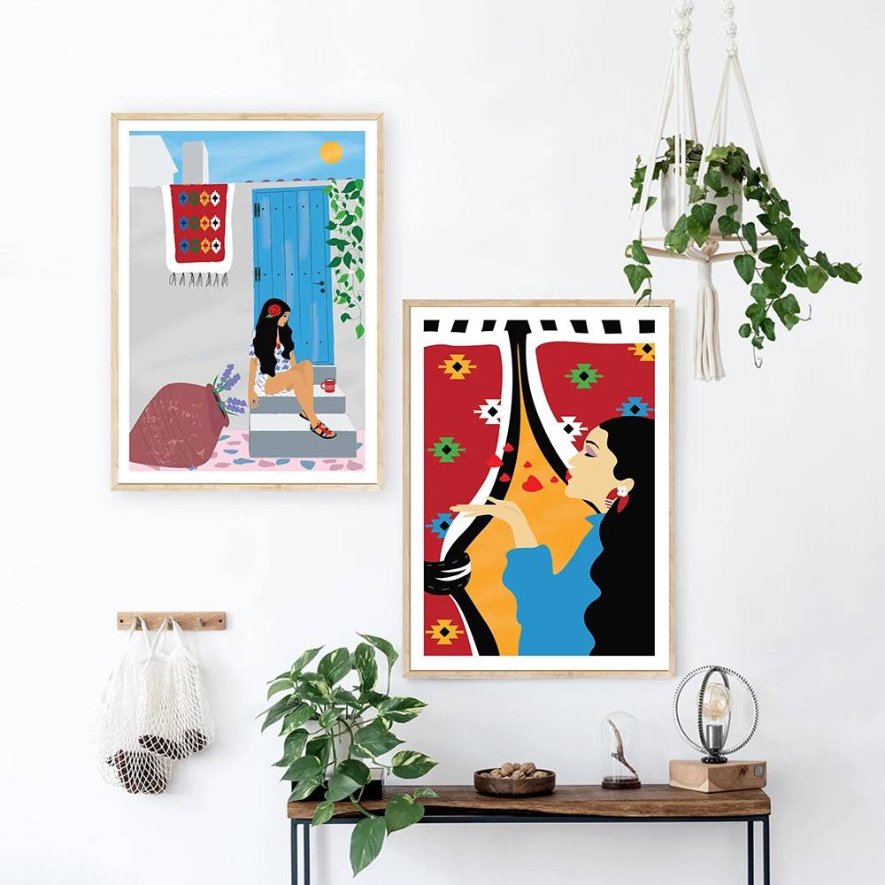 Постер в стиле бохо, Картина на холсте с изображением девочки для путешествий, Женский художественный принт в богемном стиле, современная картина для декора гостиной