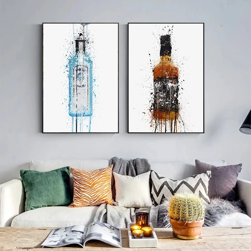 Современные модные холщовые картины, абстрактные картины с бутылкой...