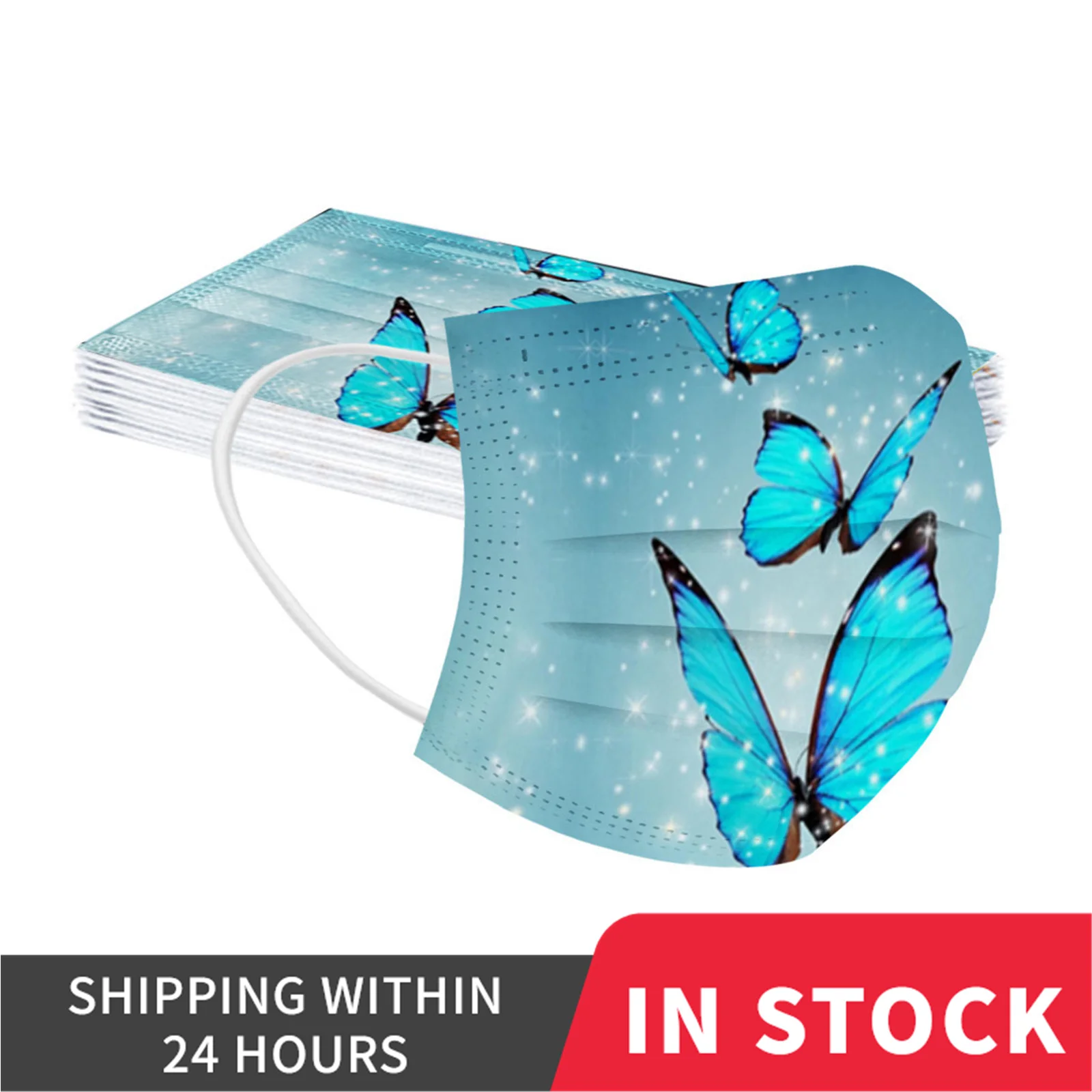 В переменного тока, 50-100 шт. детская маска с принтом бабочки черная маска одноразовые маски Mascarillas Infantiles Desechables 3ply Петли Уха Маска enfant