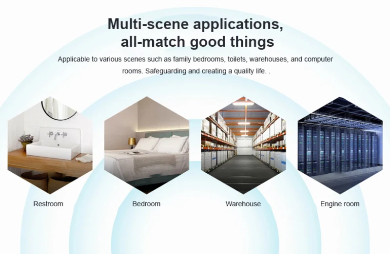 Больше применения. Этот детектор утечки воды хорошо работает в доме, отеле, магазине, офисе и квартире. Для защиты каждого момента и всюду.