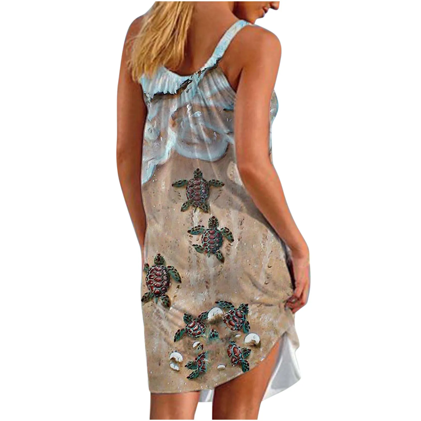 Женское пляжное платье на бретельках, свободное платье с принтом морских пейзажей, стильный сарафан без рукавов