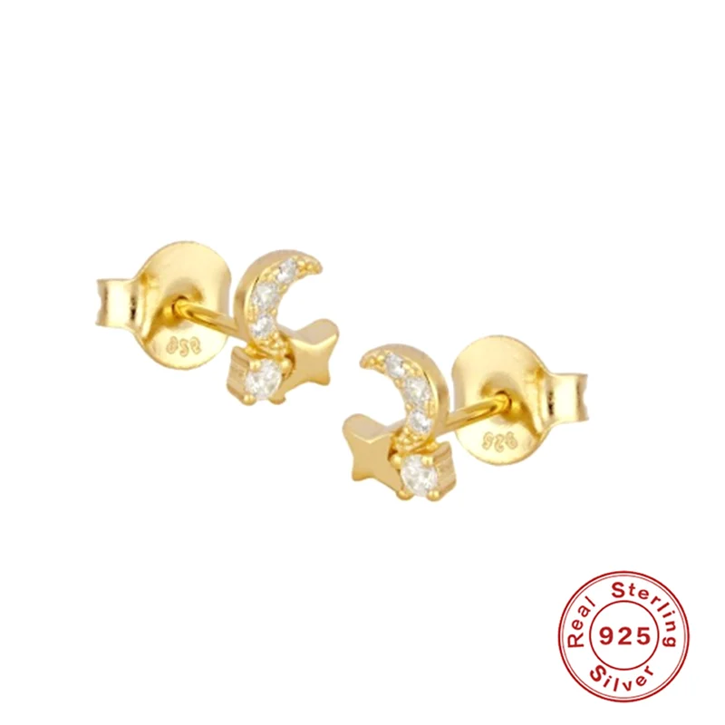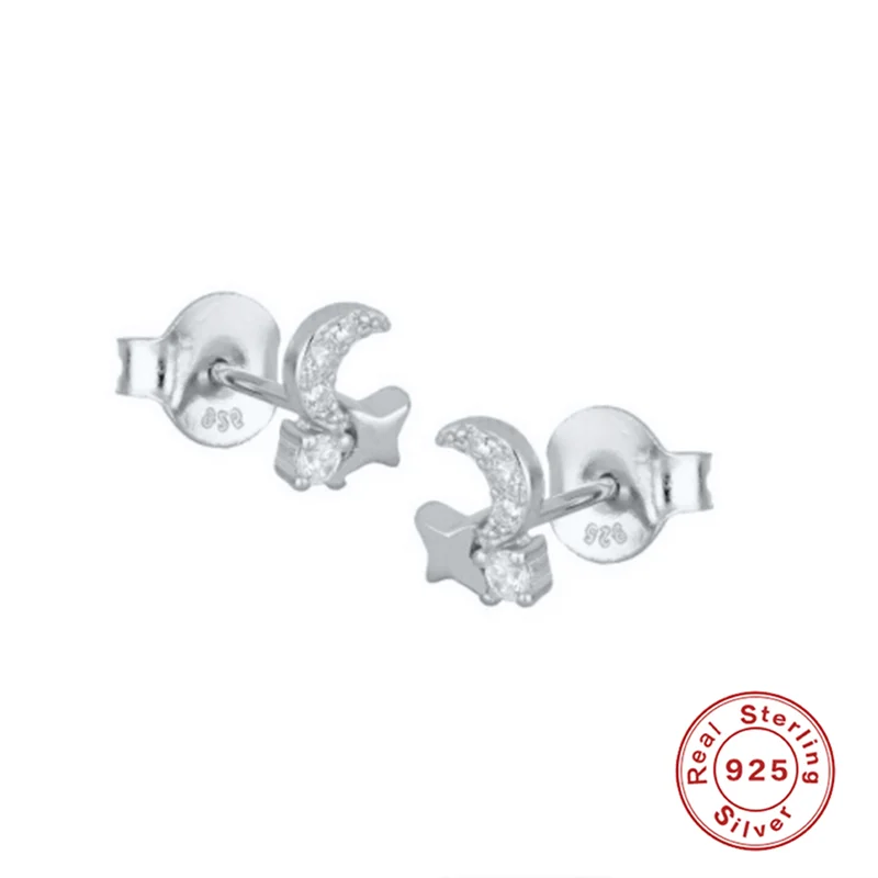 Женские серьги-гвоздики из стерлингового серебра 925 пробы с белым цирконием с Луной и звездой, роскошные модные серьги Для Пирсинга Ушей, ювелирные изделия в подарок