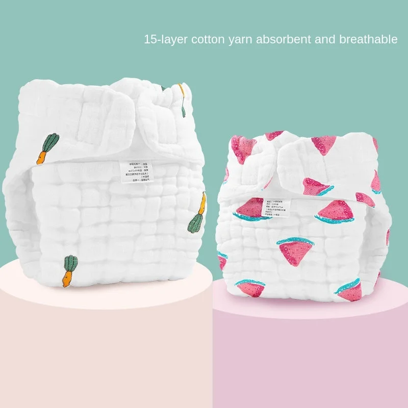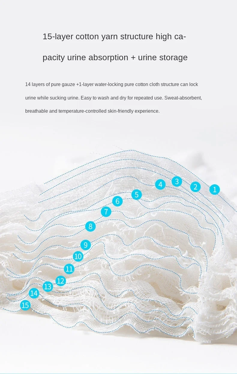 Многоразовые подгузники для детей 0-12 месяцев, 15 слоев, тканевые подгузники для новорожденных из чистого хлопка, Детские тренировочные штаны, нижнее белье