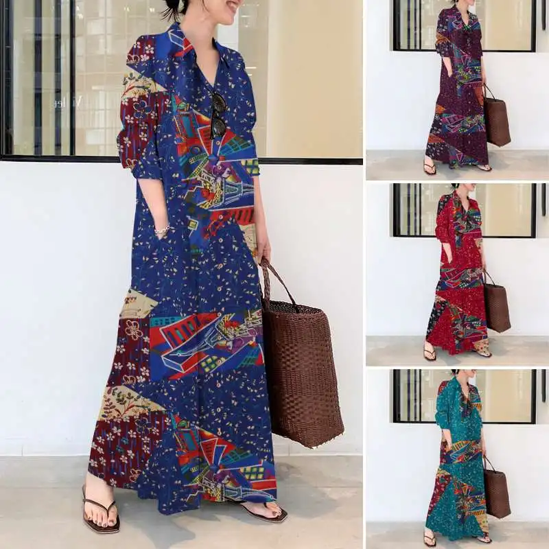 Посылка входит: 1 платьеМатериал: 100% хлопокЦвета: кофейный, красный светильник бой, КоролевскийРазмер: S,M,L,XL,2XL,Длина рукава: полный рукавВырез: отложной воротникРисунок: печать,Длина: до щиколоткиТолщина: тонкаяУкрашение: боковые карманыОсобенности: разрез по краюСтиль: Досуг, богемный, ретро, ЕвропаСезон: весна, летоПрименение: семья, праздник, работа, путешествияВнимание:1. Реальный товар может немного отличаться по цвету по сравнению с изображениями на разных мониторах компьютеров. Будьте осторожны при обращении, спасибо.2. Возможна погрешность в 1-3 см из-за ручного измерения. Приносим извинения за неудобства.3. Пожалуйста, ориентируйтесь на реальный товар, изображения модели только для справки.4. Внимание! Пожалуйста, внимательно проверьте таблицу размеров перед размещением заказа.