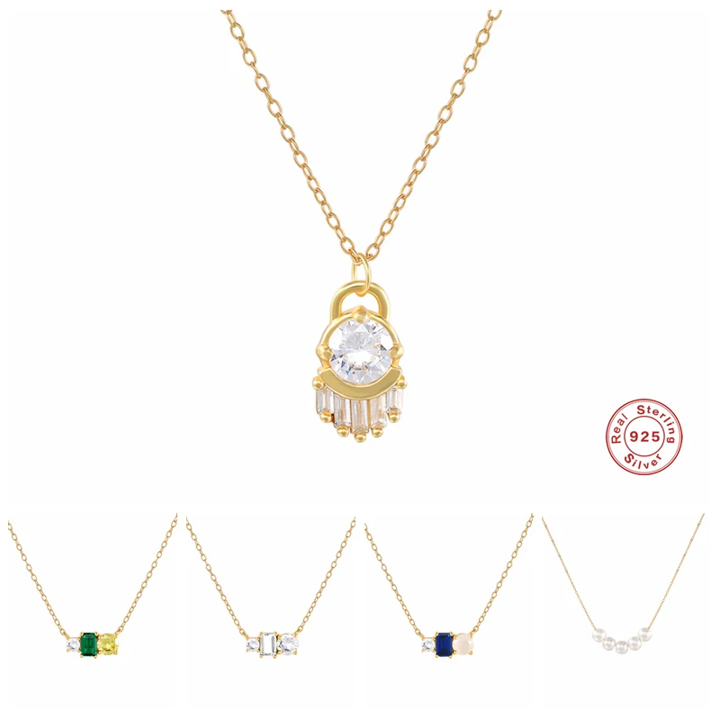 Женское ожерелье с подвеской из стерлингового серебра 925 пробы, минималистичное ожерелье с синим и зеленым цирконием, роскошное ожерелье-чокер с имитацией жемчуга