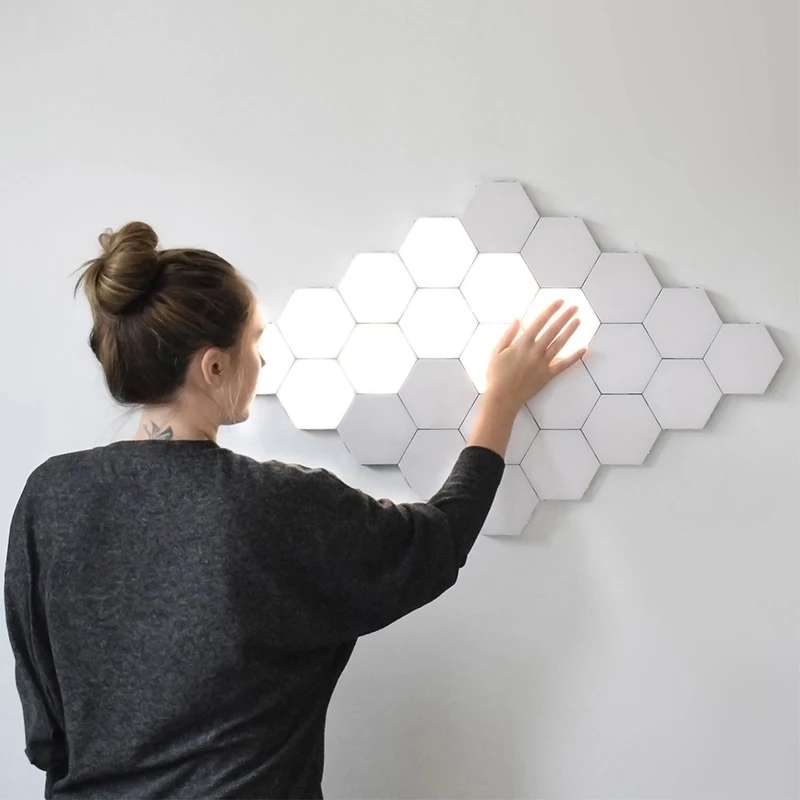 【Модульный сенсорный светильник 】это модульный сенсорный настенный светильник. Используйте шестигранную дискету, чтобы создать любую структуру в соответствии с вашими потребностями, затем включите и выключите ее, прикоснувшись к ней.