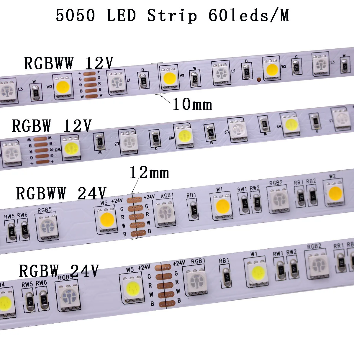 Гибкая светодиодная лента RGB, 60 светодиодовм NW 5050 K UV IP20IP65 RGB + белыйтеплый белый RGBCCT для украшения, 12 В постоянного тока, 24 В, 4000