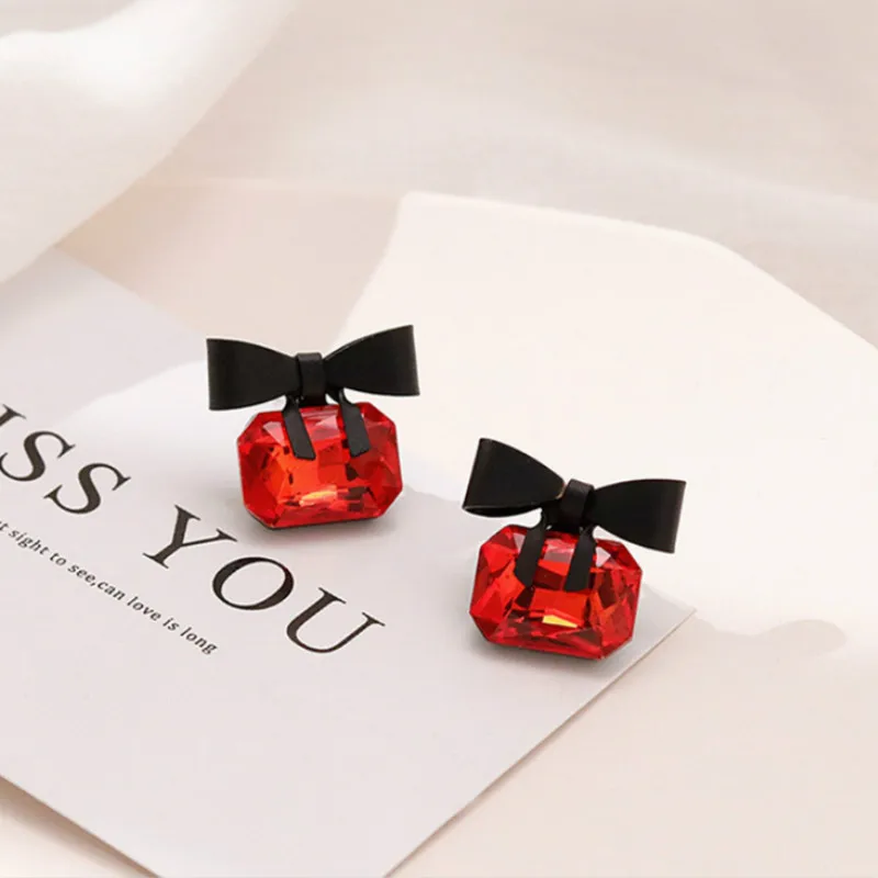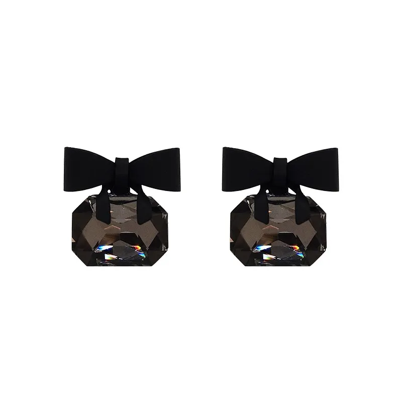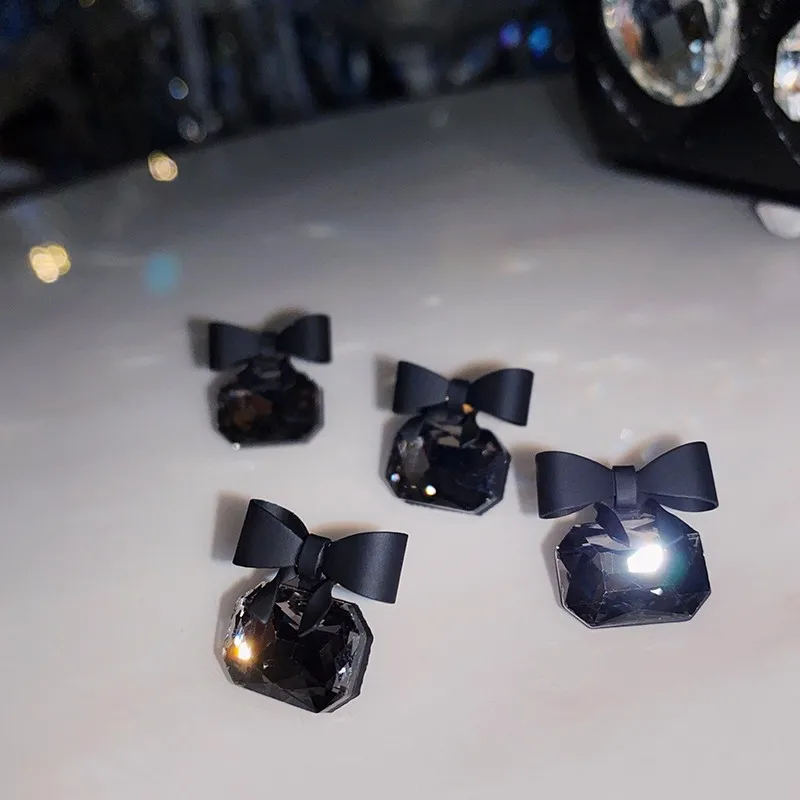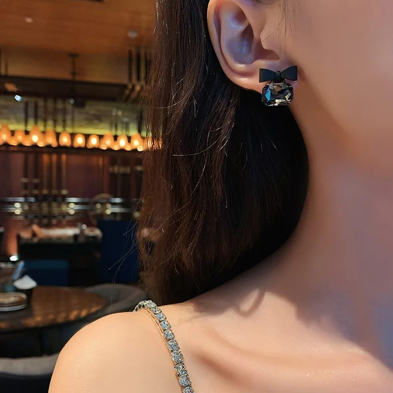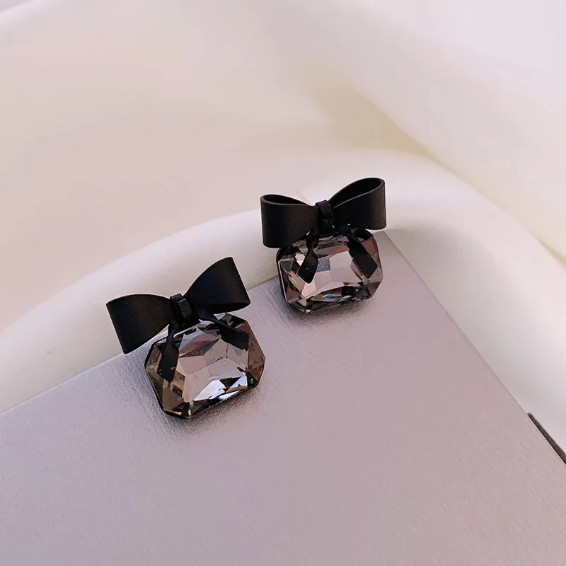 Серьги-гвоздики в Корейском стиле женские, милые Квадратные Украшения В Стиле Джокера с блестящим кристаллом, с черным бантом, геометрический дизайн, ювелирные изделия, 2021