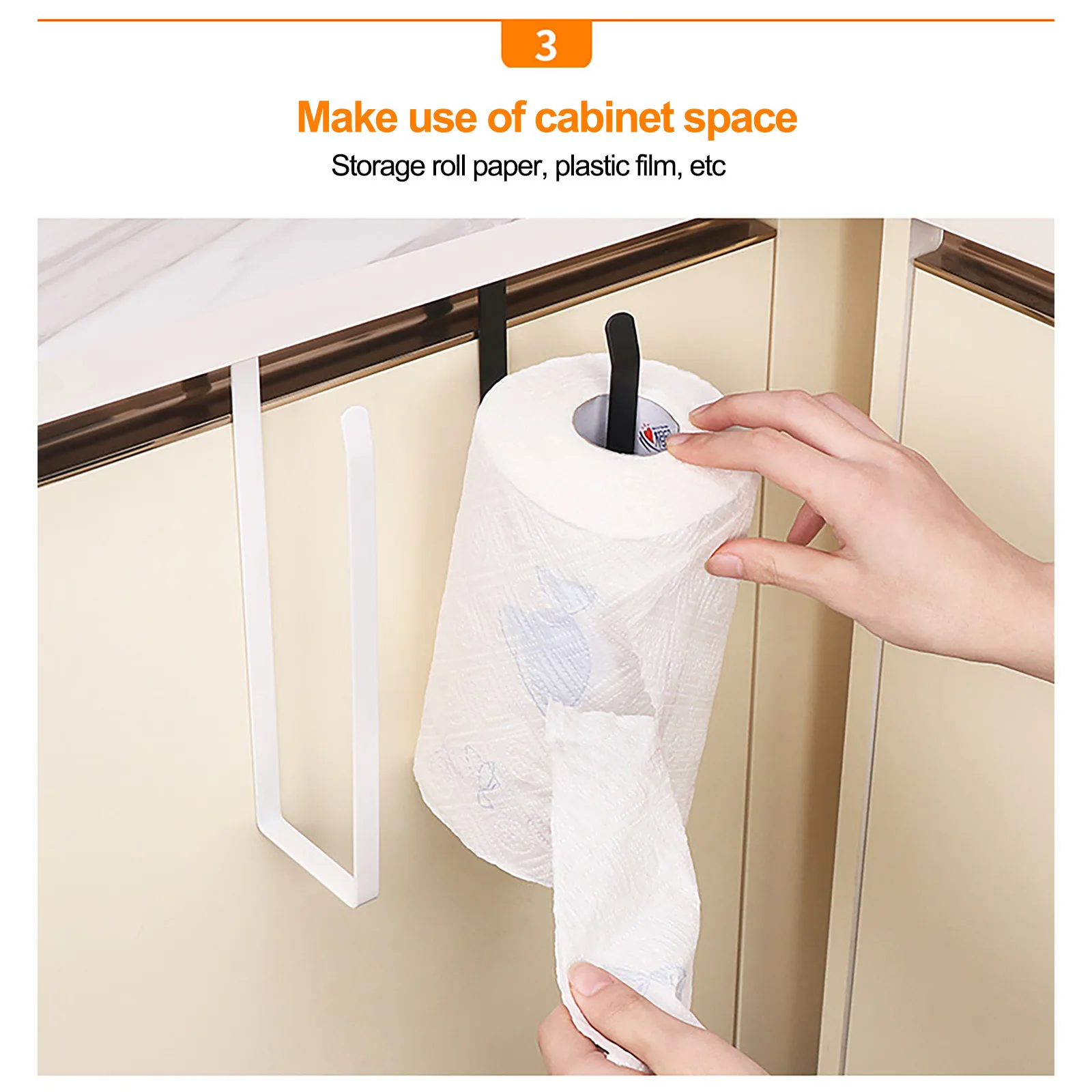 Простота установки: Используйте держатель рулона бумаги для подвешивания, вам больше не нужно сверлить отверстия, чтобы закрепить винты. Вы можете использовать его под шкафом, и вы можете организовать свою семейную жизнь лучше, чем традиционная бумажная вешалка для полотенец.