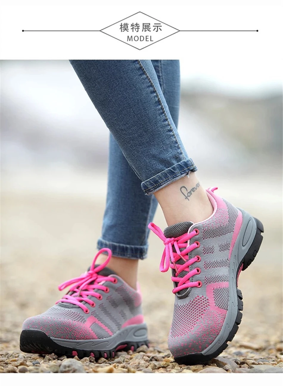 Дышащие женские ботинки со стальным носком, Нескользящие противоударные рабочие ботинки для выживания в дикой природе, Женская защитная обувь