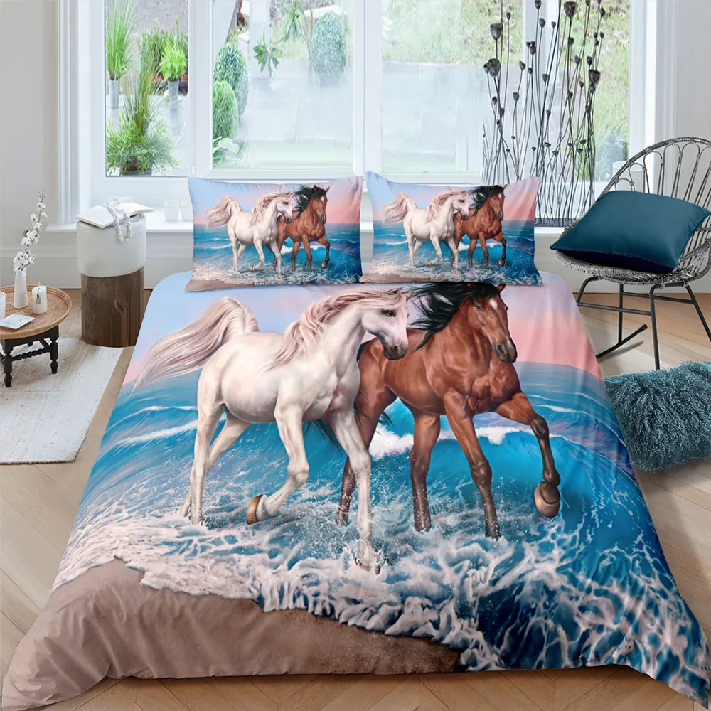Пододеяльник полный Король Queen один Размеры рисунок лошади Постел...