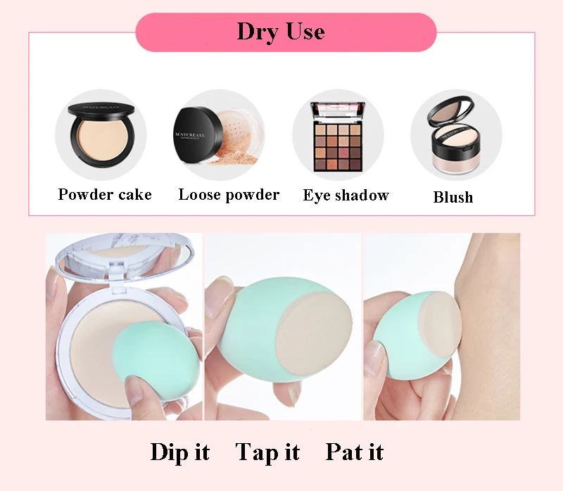 Натуральный материал очень мягкий для кожи, миниатюрный размер, легко носить с собой. Высокая плотность поверхности, нежная и мягкая, большая и мягкая при воздействии воды. Мягкий на ощупь, возможен ровный базовый макияж. Гладкая и мягкая губка для нанесения сухой/влажной пудры, BB-крема, румян, солнцезащитных блоков и т. д. Особенно хорошо работает для труднодоступных участков для нанесения макияжа и создания гладкой поверхности. Используется для лба, шеи, щек при макияже.