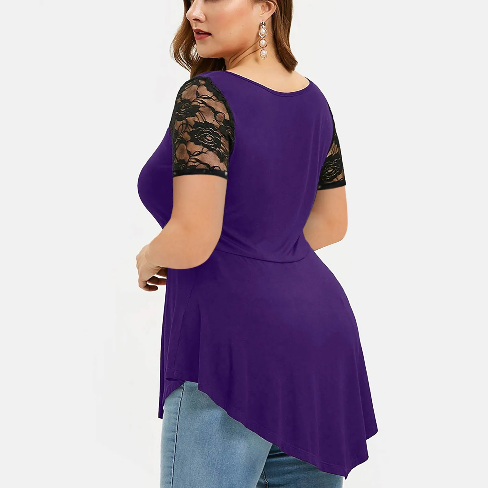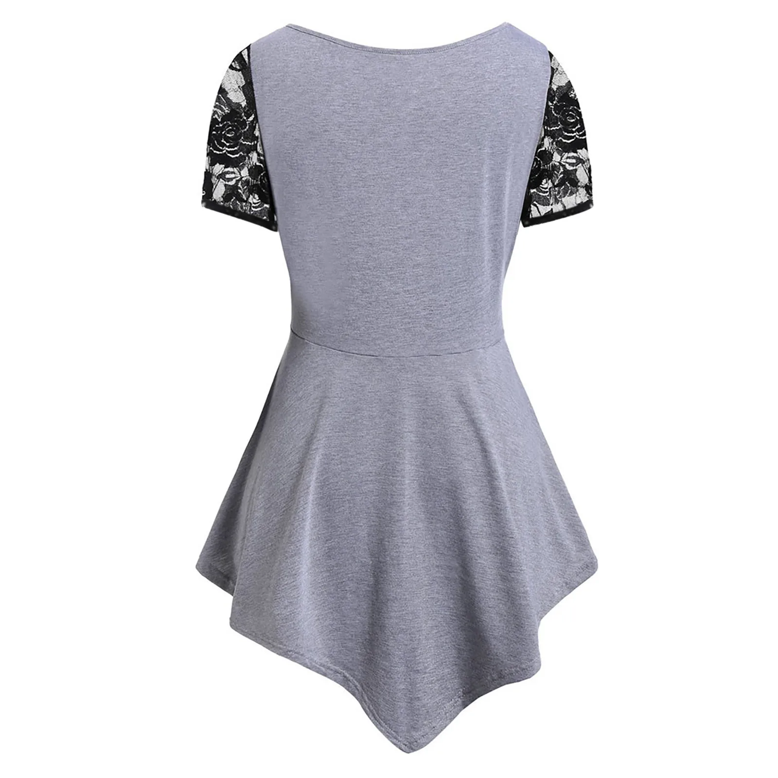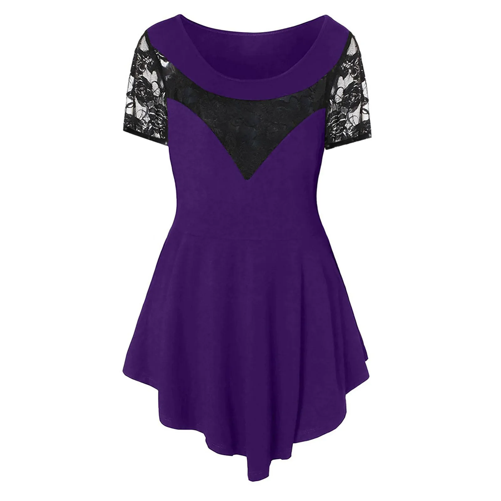 5XL размера плюс Топы для женщин с кружевами в стиле пэчворк Асимметричные рубашки для мальчиков однотонные Цвет с О-образным вырезом с коротким рукавом Блузки Топы блузка женская