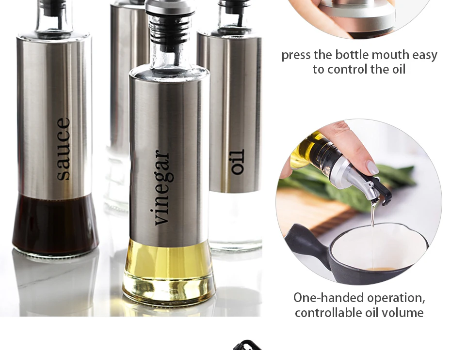 3 шт.компл. диспенсер для масла приправы, нержавеющая сталь + стекл...