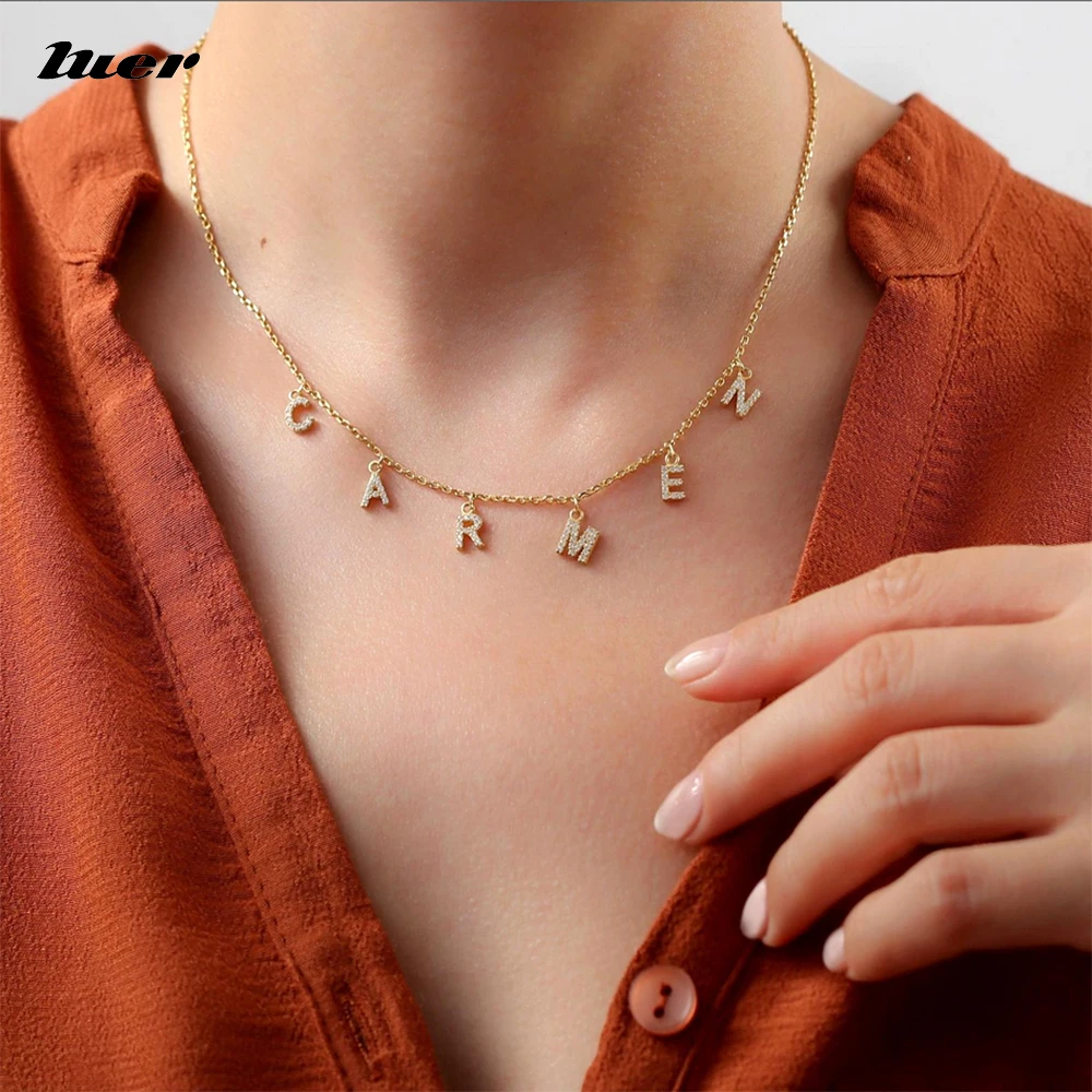 LUER ожерелье с именем инициала, рождественский подарок, ожерелье с именем, золотое ожерелье с именем-подвеской, серебряное ожерелье с именем