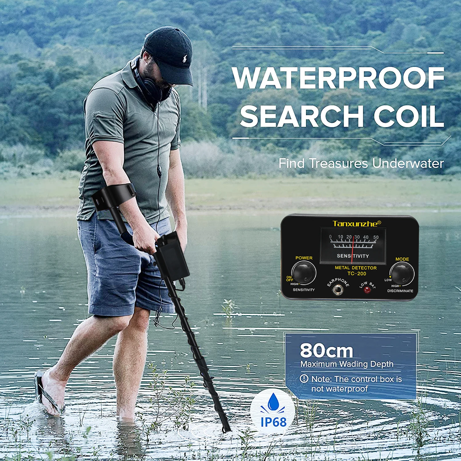 Водонепроницаемая поисковая катушка-вы можете использовать металлоискатель на мелководье.
