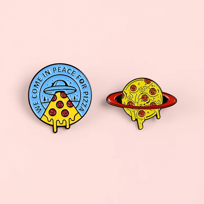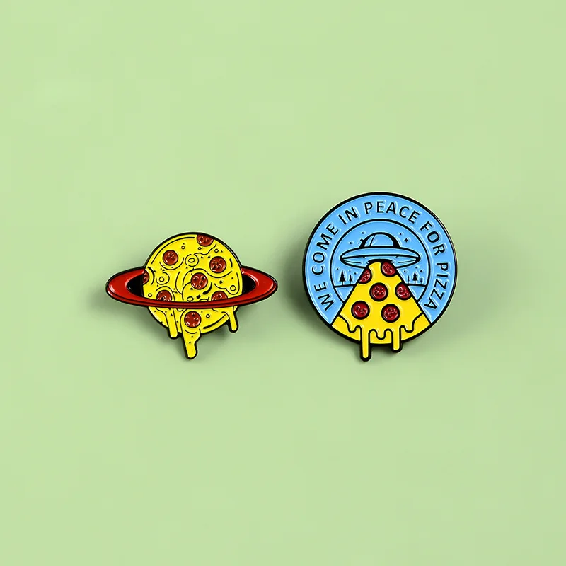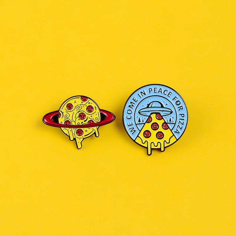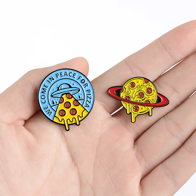 XEDZ мультфильм пиццы НЛО космический корабль планету пиццы эмалевая брошь модная желтая планету пиццы значок с изображением еды, ювелирное изделие в подарок для друзей