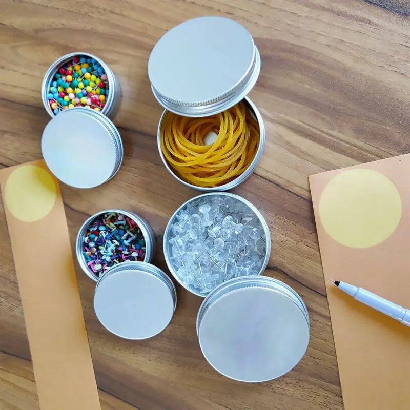 Пустые металлические банки для свечей, 100, 10 г, 1 5g, 20 г, 30 г, 50 г, 60 г, 5g, алюминиевых банок, круглая крышка, контейнер с кремом для лица, консервные банки с резьбой шт.