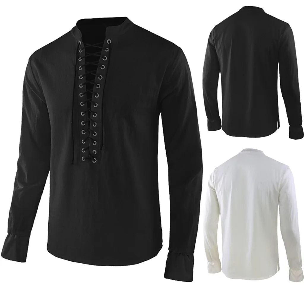 Стильная мужская рубашка для взрослых, костюм средневекового рыцаря воина, хлопковая туника, одежда Нормана Шевалье, коса Викинга, пирата, Саксона