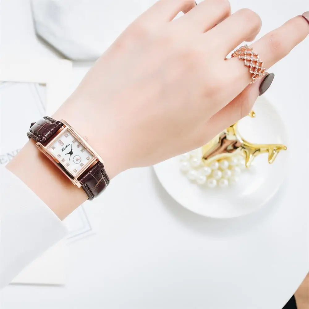 Часы женские прямоугольные кварцевые, люксовые модные наручные, с мраморным рисунком, повседневные винтажные, с кожаным ремешком