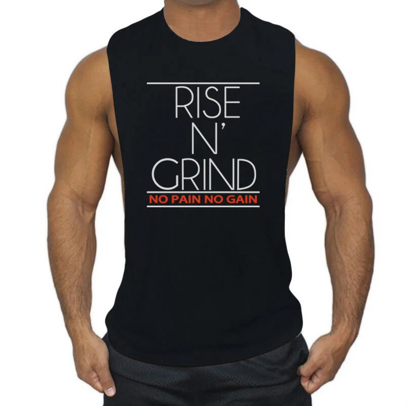 Майка для фитнеса мужская, летняя, 100% хлопок, с вырезами по бокам