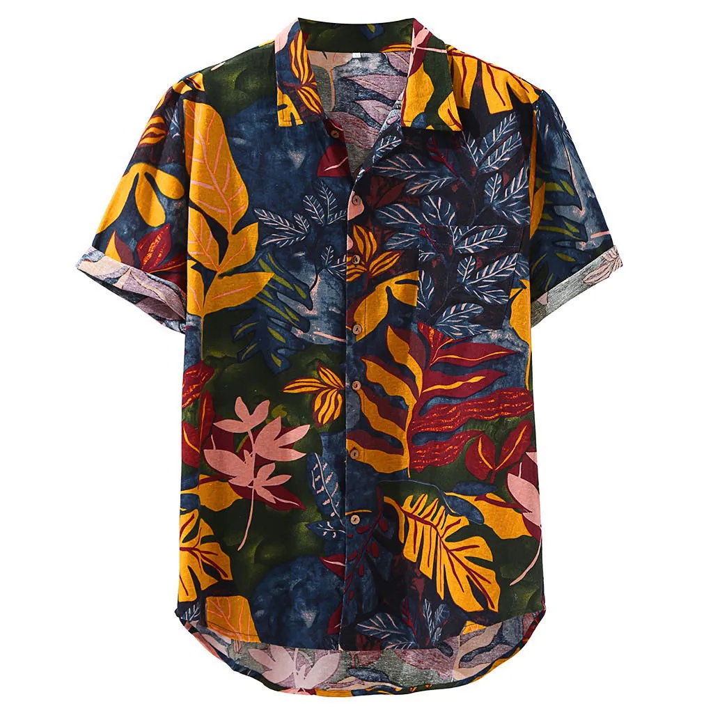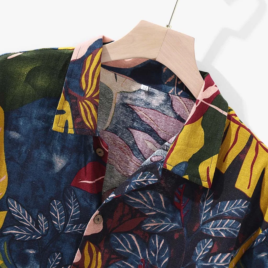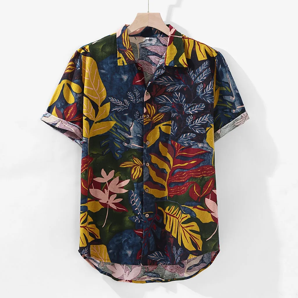 Гавайская рубашка мужская из чистого хлопка, свободная пляжная блузка из льна с коротким рукавом и цветочным принтом, топ с гавайским цветком, лето