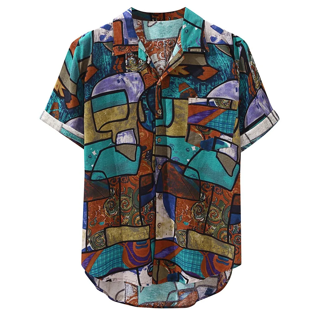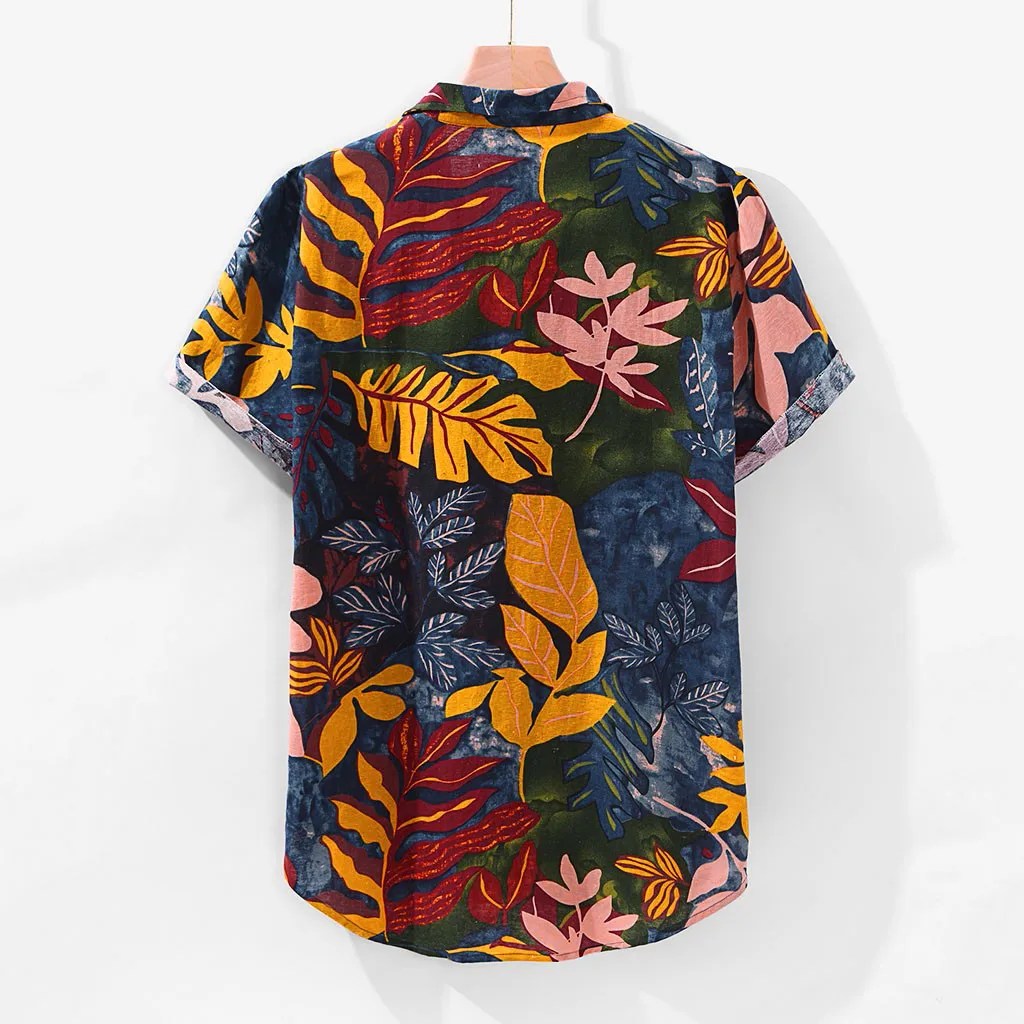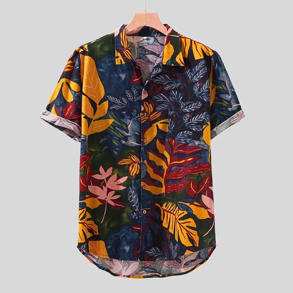 Гавайская рубашка мужская из чистого хлопка, свободная пляжная блузка из льна с коротким рукавом и цветочным принтом, топ с гавайским цветком, лето