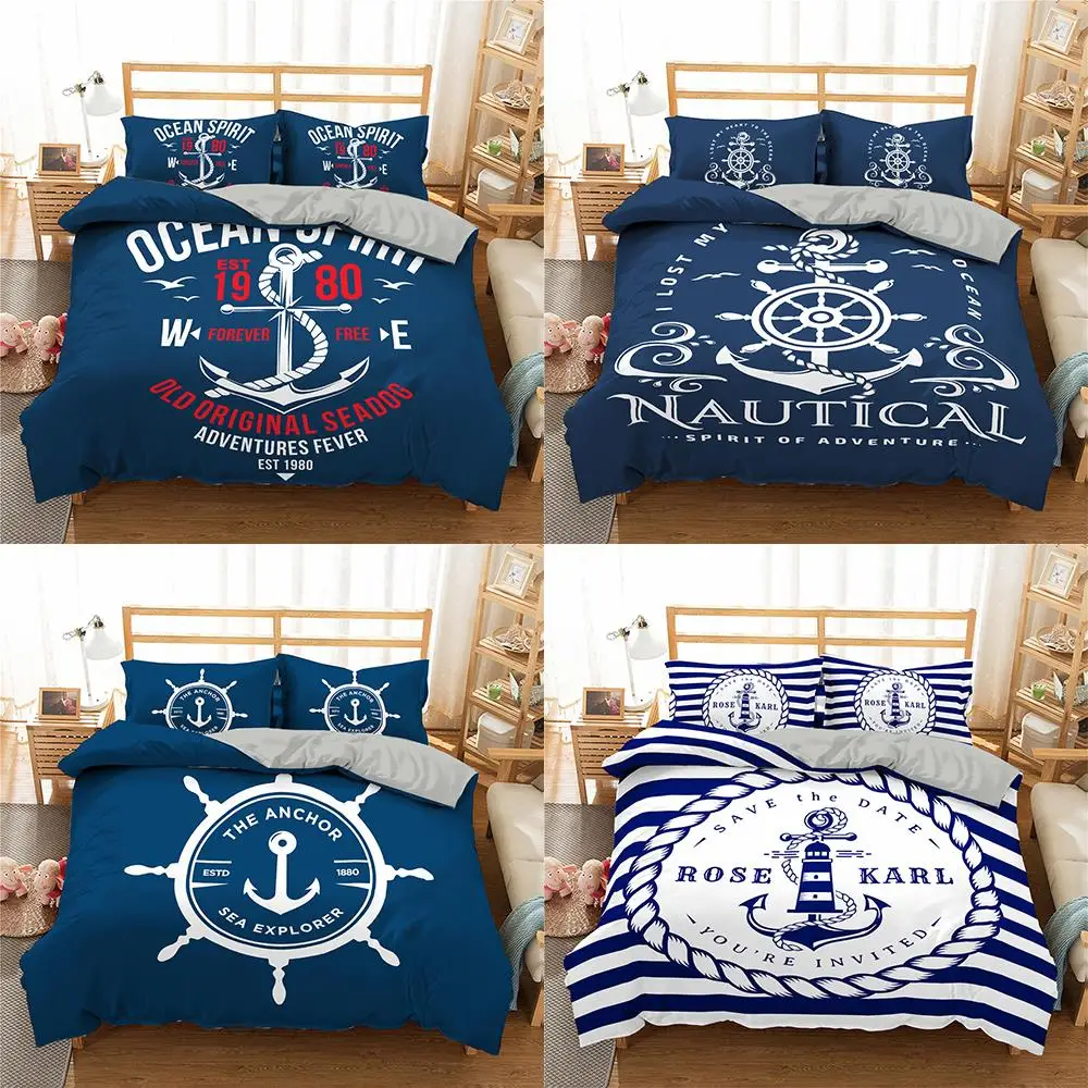 Комплект постельного белья с пододеяльником и наволочкой в морском постельное белье океан