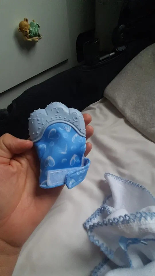 Сделано качественно из дышащей ткани в два слоя. Наружная сторона сидела с шелестящим целофаном между слоями ткани. Погрызушка сделана из силикона. Перчатка запаха не имеет. Стоит обратить внимание что в комплекте идёт только одна перчатка!