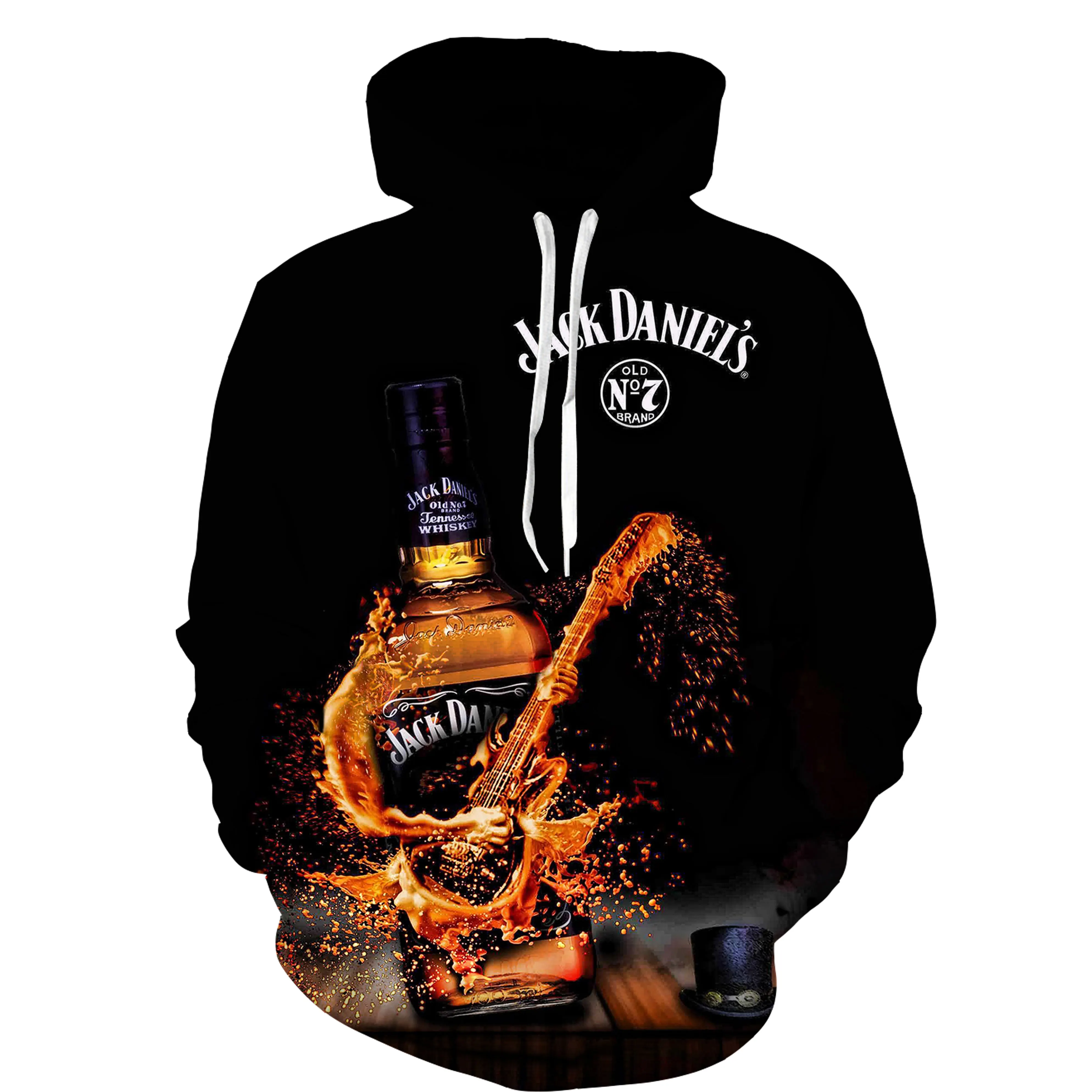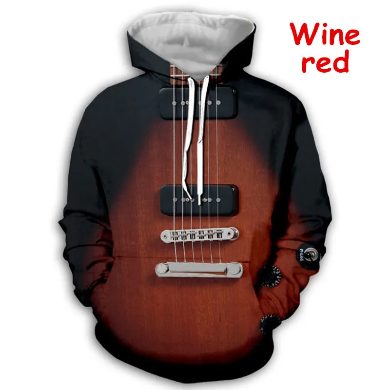 2021 весна и осень 3D печать с капюшоном гитара шаблон размера плюс черный с длинными рукавами Печатный Топ