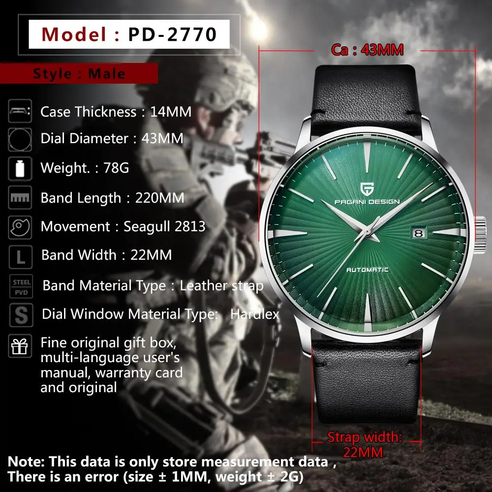 Часы PAGANI DESIGN Мужские механические, новые зеленые водонепрониц...