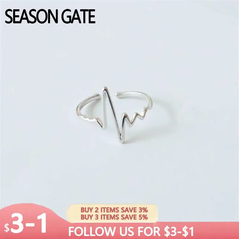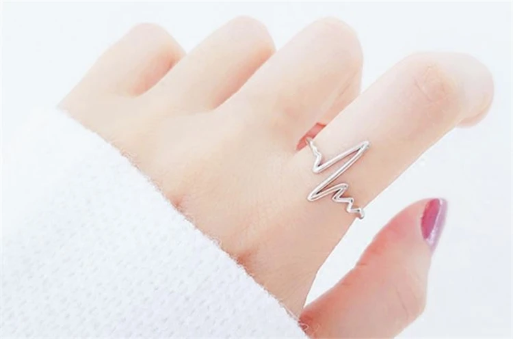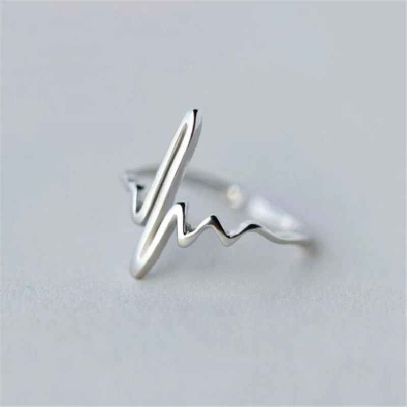 Женское Открытое кольцо с электрокардиограммой, серебристого цвета