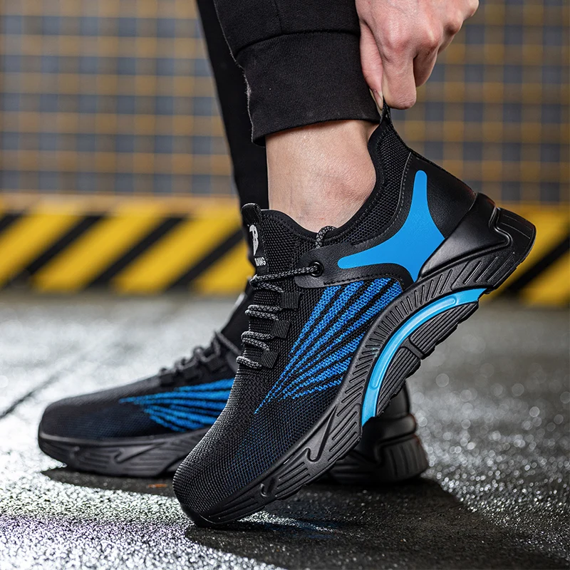 Нерушимой человек безопасная обувь светильник Нескользящая дышащая рабочая обувь Для мужчин Сталь носок не прокалываются, из сетчатого материала подносок, стальная Антипрокольная стелька кроссовки