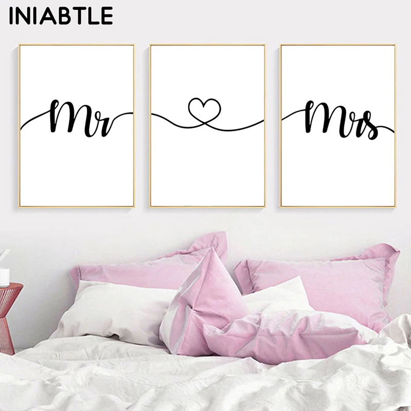 Любовь фраза Mr Mrs плакаты печать черный и белый холст картина скандинавский гостиная спальня настенные художественные фотографии украшение дома