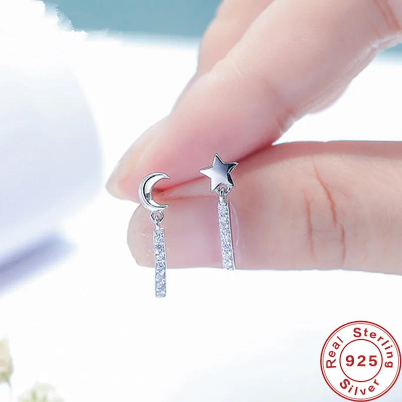 Высокое качество 925 стерлингового серебра серьги для женщин с изображением Луны и звезд, серьги, модные ювелирные изделия, элегантный серьги ювелирные изделия высокого ювелирное изделие, подарок
