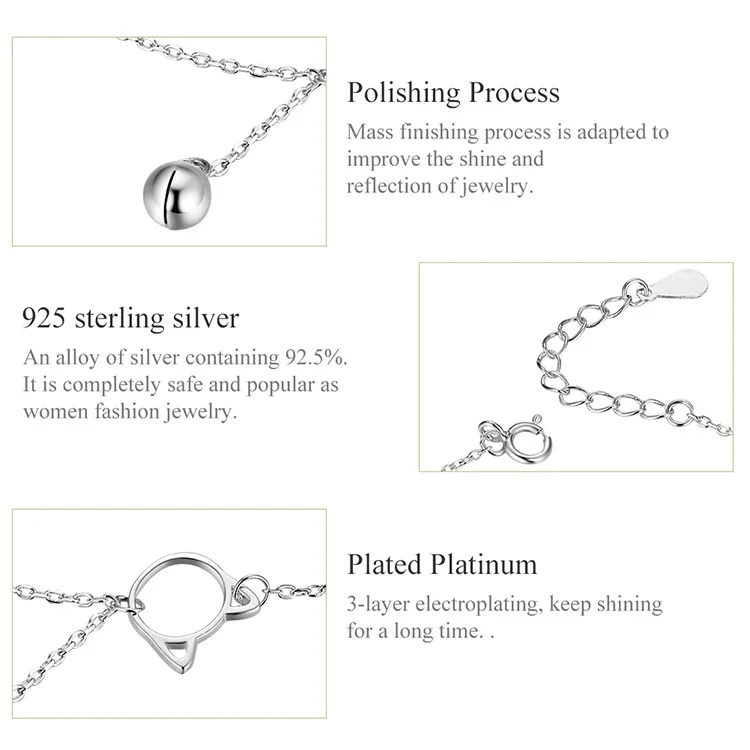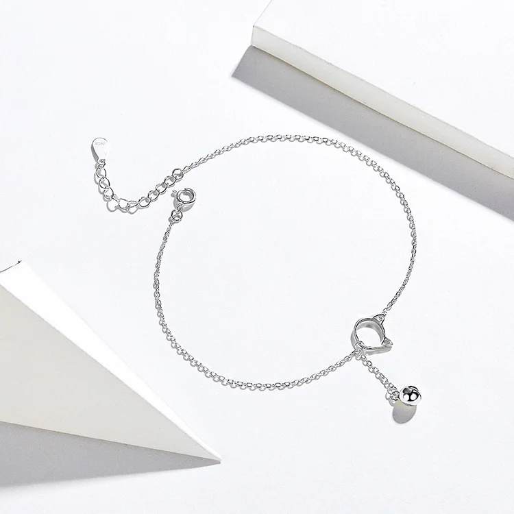 Браслеты-анклеты женские из серебра 925 пробы с колокольчиком и котом