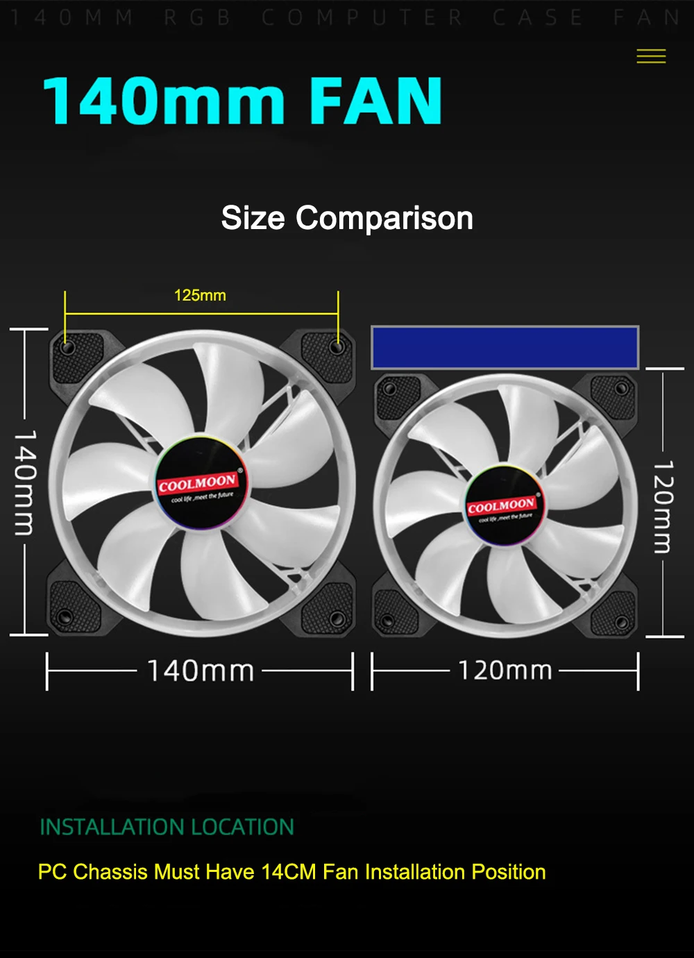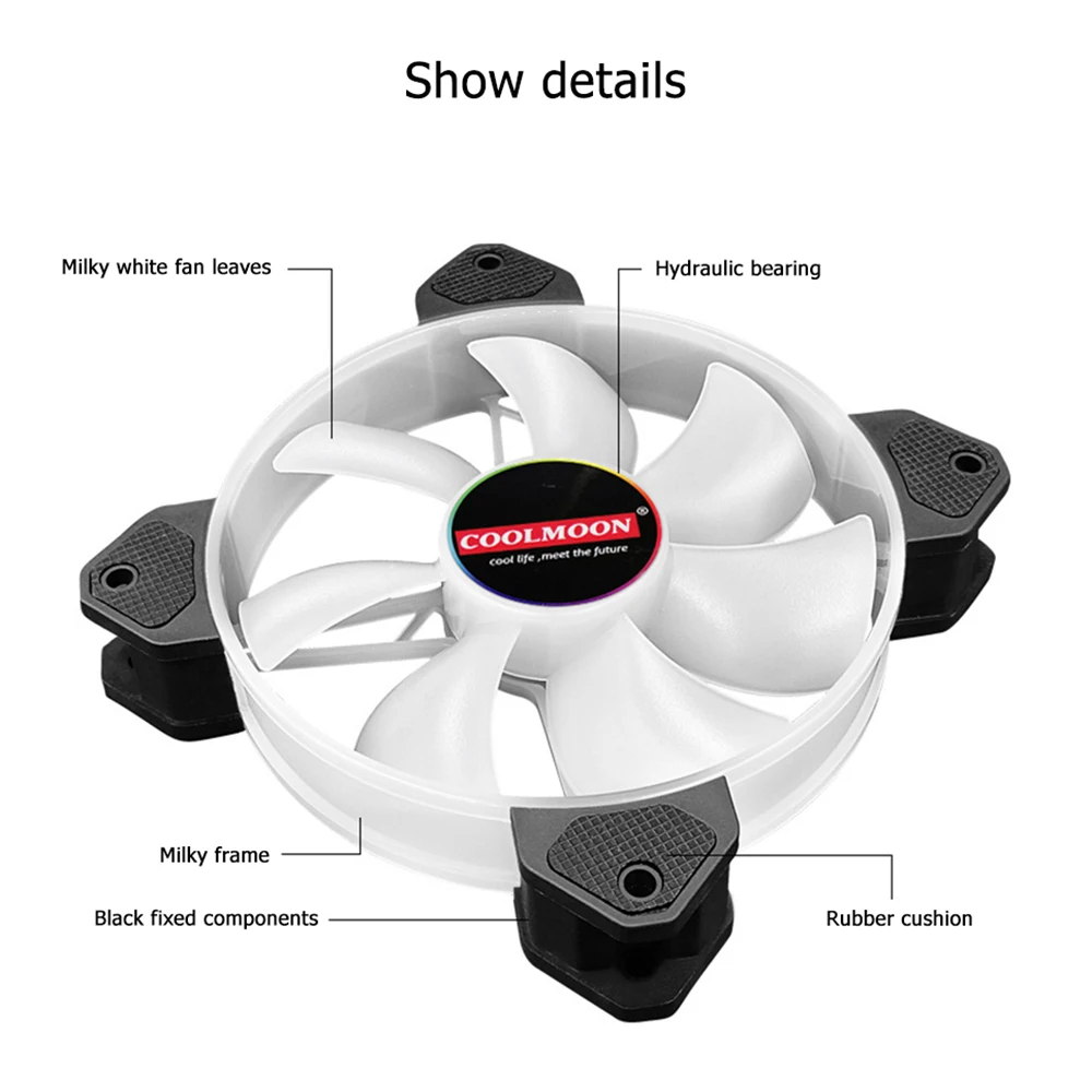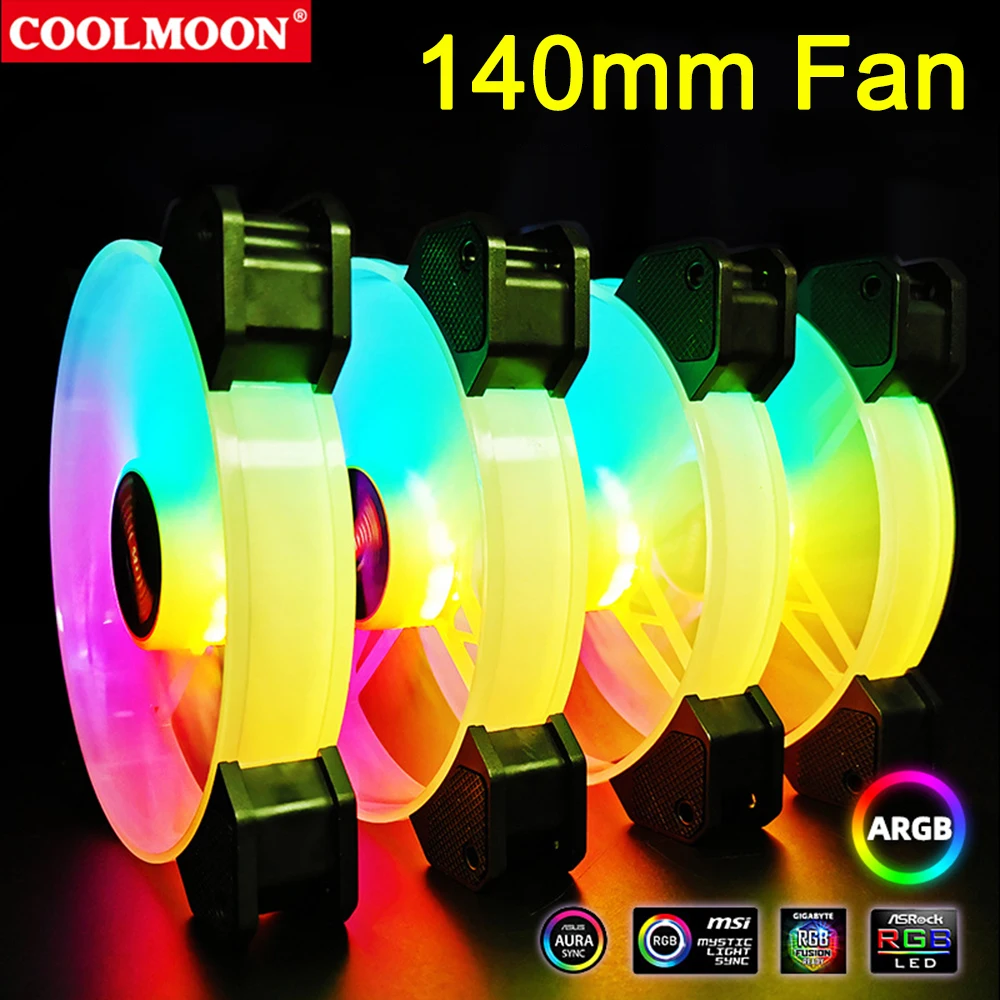 Кулер Coolmoon 140 мм с RGB-подсветкой, 6 контактов