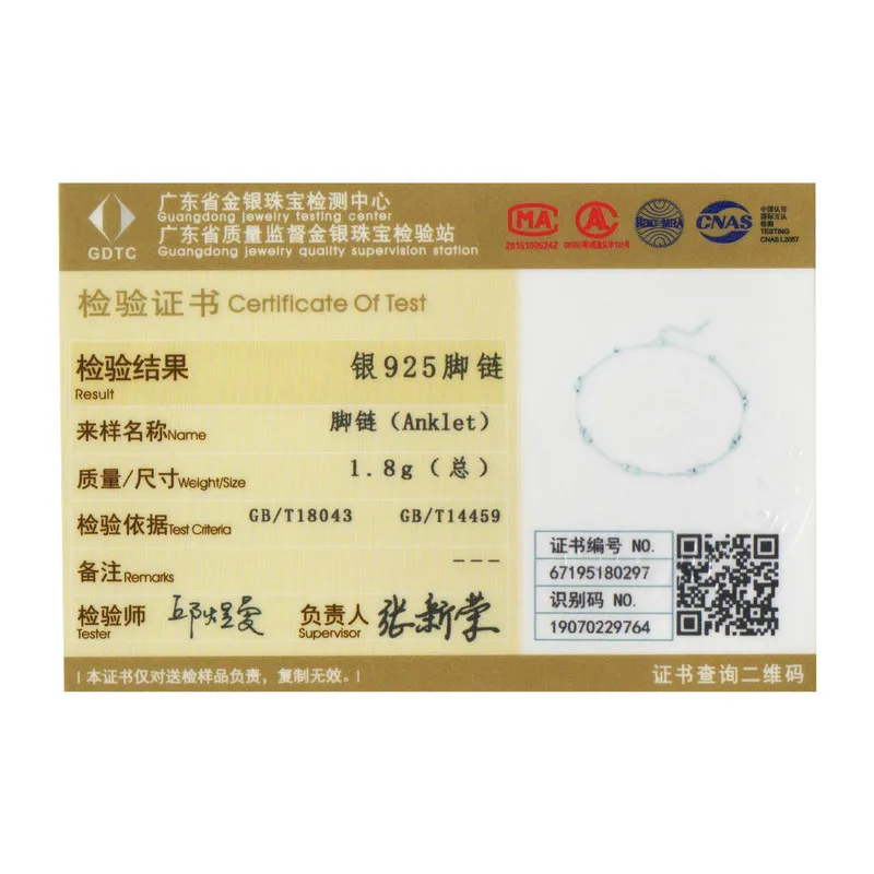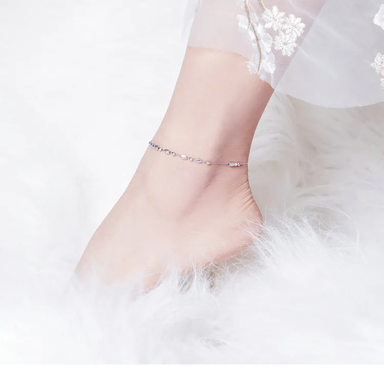 Ножной браслет женский из серебра 100% пробы, с блестками, CQT011