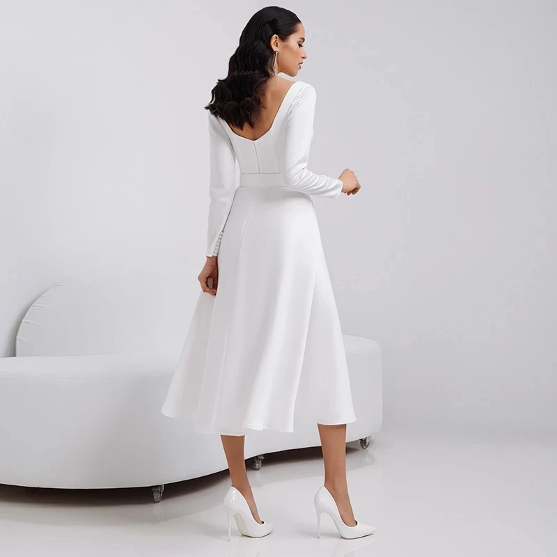 Роскошное Свадебное платье LUXIYIAO LO99 А-силуэта длиной ниже колена 2022 изысканное высококачественное атласное свадебное платье с квадратным вырезом и длинным рукавом
