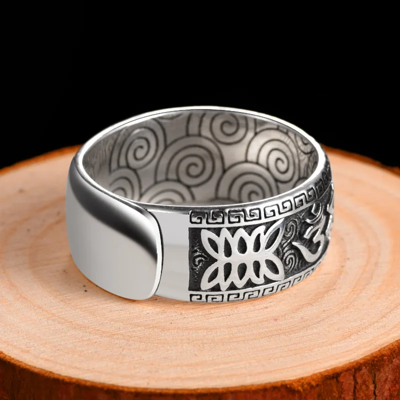 Кольцо с мантрой женское и мужское, Ювелирное Украшение из вулканического металла, 6 персонажей, уродливая Будда