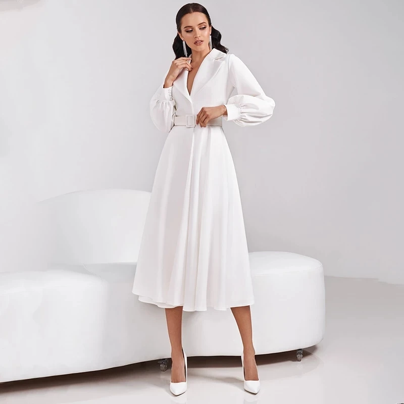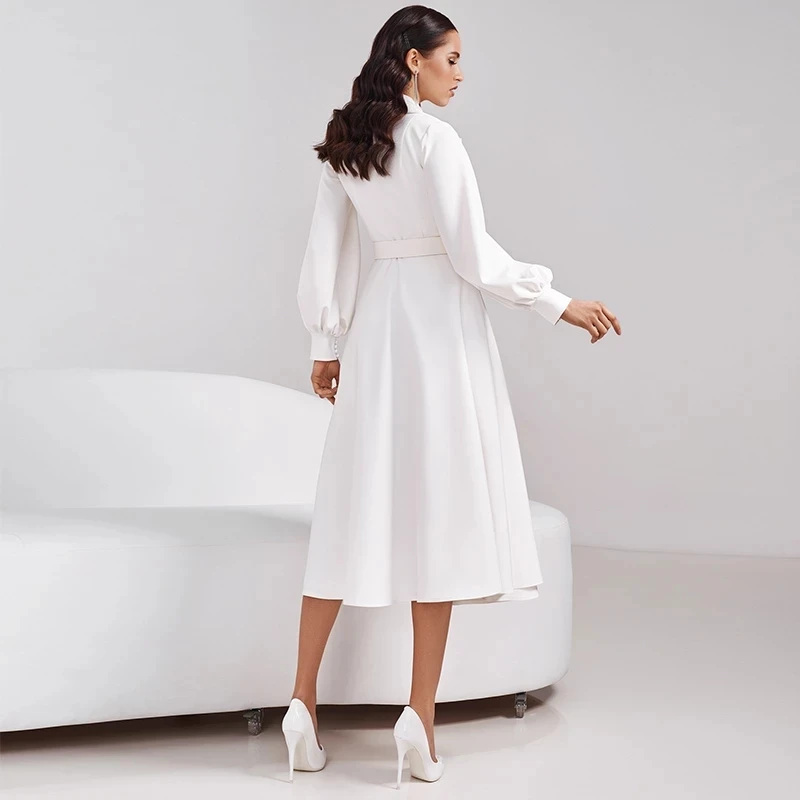 LUXIYAIO LO98 скромное ТРАПЕЦИЕВИДНОЕ свадебное платье длиной до колен изготовленное на заказ трикотажное платье невесты с V-образным вырезом и длинным рукавом для женщин с поясом